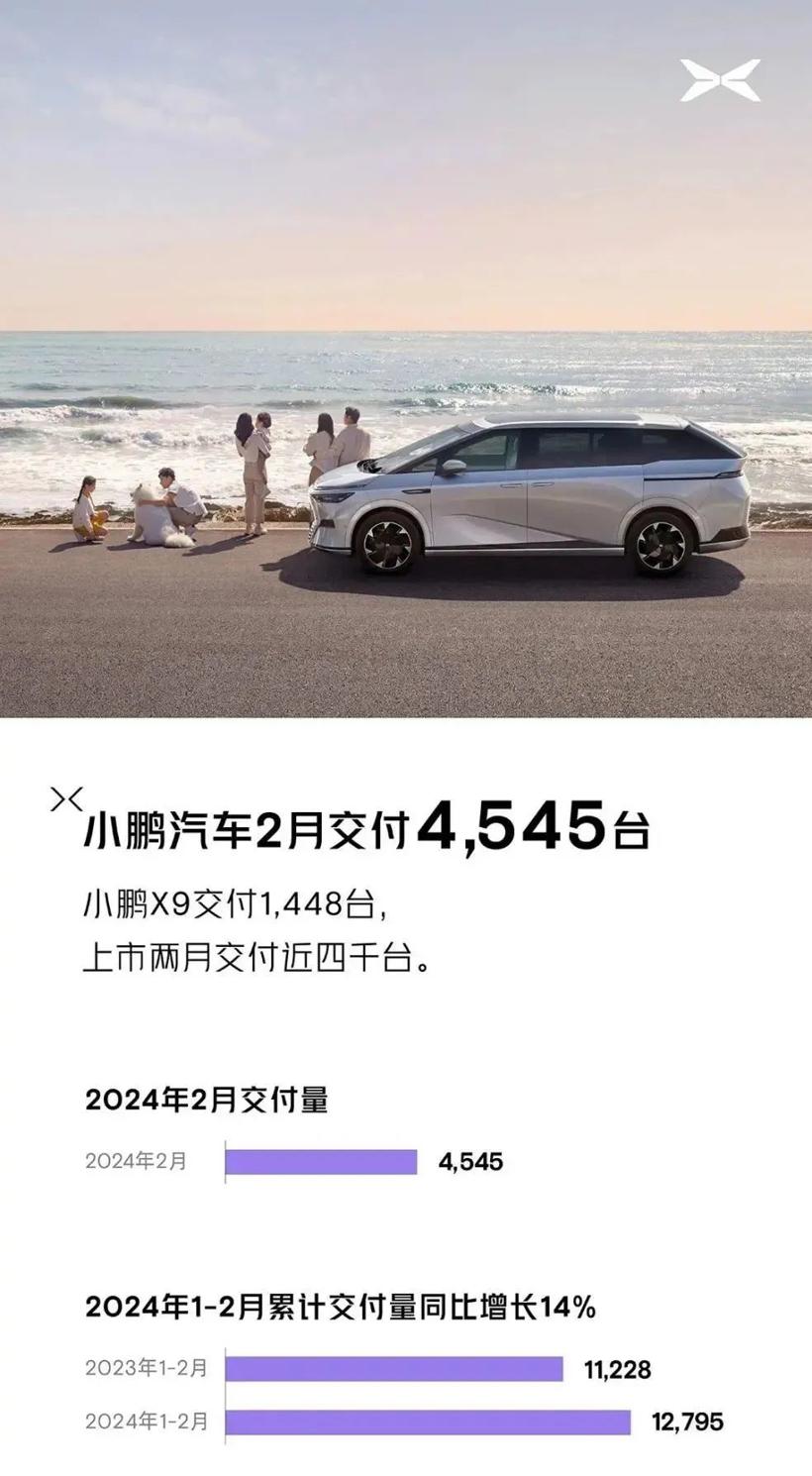 作为“蔚小理”成员之一,小鹏汽车在2023年经过一系列调整后,不仅在产品端愈发完善,全年累计交付量达14.16万台,而且还收获大众汽车青睐。事实上,小鹏汽车依旧未走出窘境。继1月交付量仅8250辆后,小鹏汽车2月交付量为4545台,其中小鹏X9交付1448台,品牌月交付量再次“腰斩”。