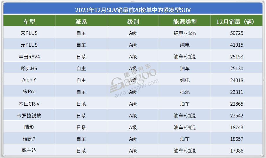 2023年12月SUV销量TOP20:新能源车强势领跑,问界新车入榜