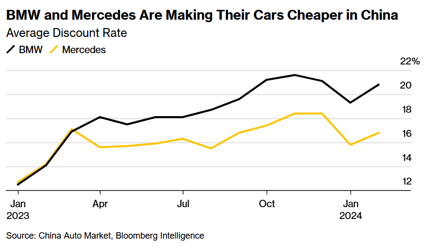 今年第一季度,宝马集团在中国销售了187,452辆宝马和MINI汽车,同比下跌3.8%。有分析指出,价格战以及来自中国汽车制造商的竞争日益加剧,对宝马集团在华销量造成了一定程度的影响。BI分析师Michael Dean表示,随着定价压力的增大,奔驰和宝马正在中国市场大幅打折。