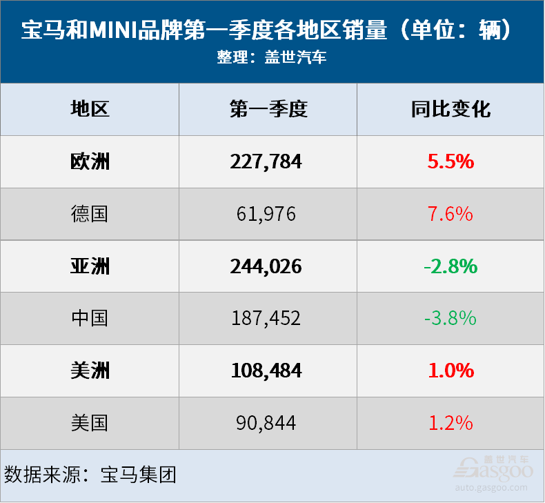 在欧洲市场,宝马和MINI品牌第一季度交付量为227,784辆,同比增长5.5%。在此期间,宝马和MINI品牌在德国交付了61,976辆汽车,同比增长7.6%。