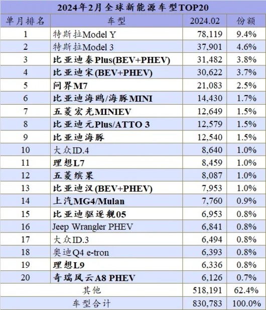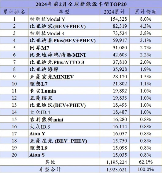 由于统计范围涉及全球多个国家,所需时间较长,因此日前出炉的最新榜单只截止到2月,不过从中发现比亚迪、特斯拉和其他车企以及部分车型的许多亮点。