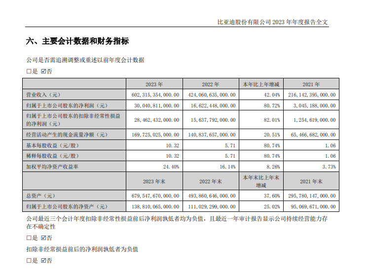 比亚迪公布2023年财报