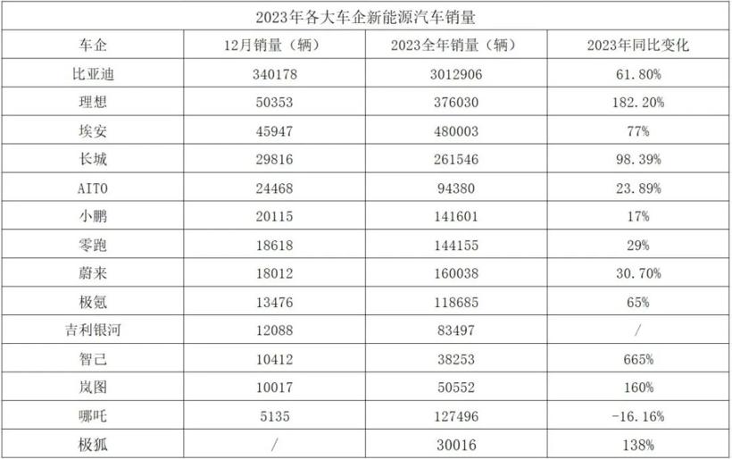 2024年1月1日刚刚到来,各大车企马不停蹄地公布了自家的新能源汽车销量数据。总的来说,除了小部分销量下滑,以及部分还没公布数据的之外,绝大多数新能源汽车品牌的销量实现了不同程度的增长。