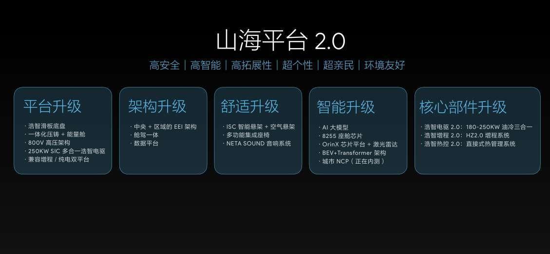从技术体系建设上来看,2023年,哪吒汽车实现了从技术研发,到整车以及核心零部件的制造,“从零到整”自产自研的闭环。8月,哪吒汽车发布浩智技术品牌2.0,亮相浩智超算、浩智滑板底盘、浩智电驱、浩智增程和浩智热控五大技术产品;10月,哪吒汽车发布了以科技平权为核心的云河平台;11月,哪吒汽车发布了山海平台2.0;11月,浩智滑板底盘全球首次亮相。
