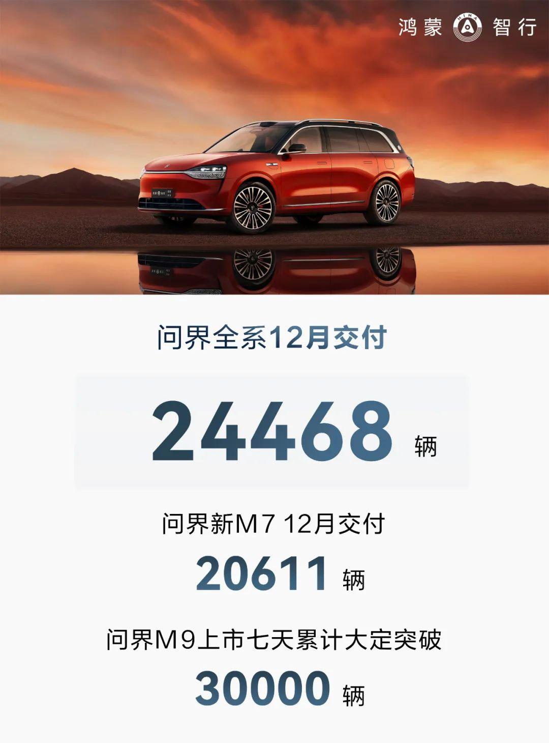 AITO问界系列12月交付新车24468辆,全年累计交付9.4万辆